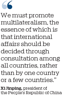 "We must promote multilateralism, the essence of which is that international affairs should be decided through consultation among all countries, rather than by one country or a few countries," he said.