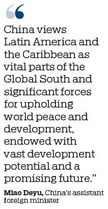 "China views Latin America and the Caribbean as vital parts of the Global South and significant forces for upholding world peace and development, endowed with vast development potential and a promising future," Miao said at the briefing.