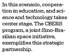 In this scenario, cooperation in education, and science and technology takes center stage. The CBERS program, a joint Sino-Brazilian space initiative, exemplifies this strategic partnership. After decades of collaboration between space agencies and universities of the two countries, the CBERS program has enhanced Brazil's strategic capability to monitor deforestation, climate change and agriculture with scientific precision.