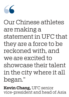 "Our Chinese athletes are making a statement in UFC that they are a force to be reckoned with, and we are excited to showcase their talent in the city where it all began," he added.