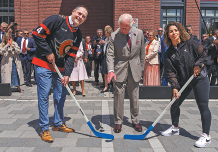 On their first stop in Ottawa, the royals visited a farmers' market, where they were cheered by thousands of Canadians. The king also dropped the puck for a street hockey game.