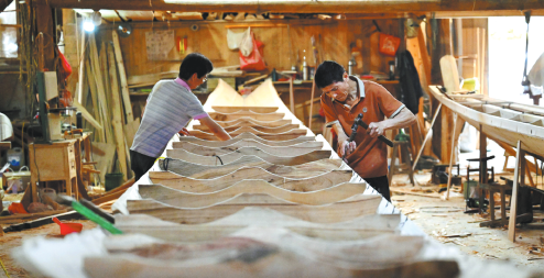 As Dragon Boat Festival approaches, craftsmen in Fangzhuang village of Nantong township in Minhou county of Fuzhou, Fujian province, are working with their axes, saws, chisels and hammers to make dragon boats from cedar and camphor wood. With a history of more than seven centuries of traditional boat-making, the village is known as the "Village of Dragon Boats". Building a dragon boat involves a series of intricate processes, such as crafting the keel, nailing the bottom planks, sanding the structure, caulking the seams, painting patterns, and affixing a crafted dragon head. Every year, more than 200 boats are sold both domestically and globally.