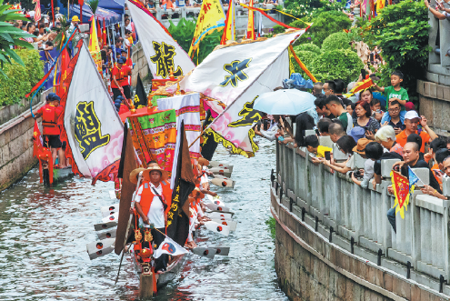 As dragon boats swiftly navigated through the narrow waterways of the Diejiao water town in Foshan, Guangdong province, the crowds were thrilled by the jaw-dropping maneuvers and fierce competition.