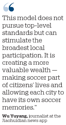 "This model does not pursue top-level standards but can stimulate the broadest local participation. It is creating a more valuable wealth — making soccer part of citizens' lives and allowing each city to have its own soccer memories."