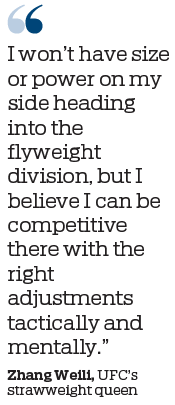 Out-sized and overpowered? UFC's strawweight queen Zhang Weili dismisses the physical challenge of her ambitious division leap, drawing on her finesse to punch above her weight.