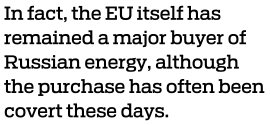 In fact, the EU itself has remained a major buyer of Russian energy, although the purchase has often been covert these days. The latest talks on more military aid to Ukraine and more spending on European countries' military and more war readiness could indeed become a self-fulfilled prophecy, prolonging the conflict and raising the risk of a wider war and even a nuclear war.