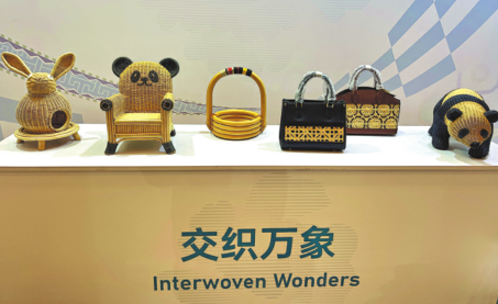 Outside the international exchange exhibition hall, a wickerwork installation has provided a shade from the sun, allowing visitors to enter and experience firsthand various inset patterns.