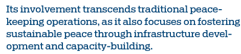 Moreover, since joining the UN peacekeeping mission in 1990, China has dispatched more than 50,000 personnel on 25 missions, making it the second-largest financial contributor and the largest personnel contributor to UN peacekeeping among the five permanent members of the UN Security Council. Its involvement transcends traditional peacekeeping operations, as it also focuses on fostering sustainable peace through infrastructure development and capacity-building. For instance, in war-torn South Sudan, Chinese engineering battalions have built more than 1,300 kilometers of roads and 100 bridges, reconnecting communities and enabling humanitarian access. These efforts reflect China's belief that peace, instead of being imposed, must be restored through tangible improvements in daily life.