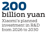 Lei Jun, chairman and CEO of Xiaomi, said the company will invest 200 billion yuan ($27.8 billion) in R&D from 2026 to 2030.