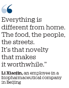 Professionals like Li Xiaojin, who works at a biopharmaceutical company in Beijing, are also redefining weekend travel. He often jets off to another country after a week's work — sometimes without taking a full day off.