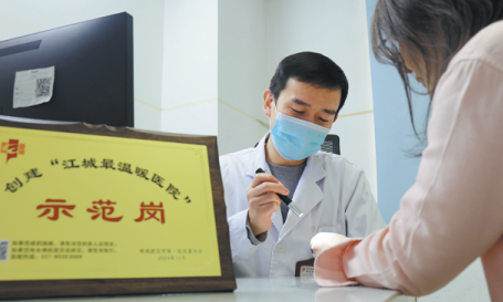 In the dermatology department of the hospital, chief physician Tian Liming diagnosed and prescribed treatment for a patient surnamed Wu. Accompanied with a traditional Chinese herbal decoction and an external recombinant human epidermal growth factor gel, Tian suggested the treatment should be supplemented with pulsed dye laser and micro-drop injection of botulinum toxin. After two courses of treatment, Wu's facial symptoms disappeared.